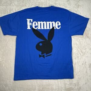 NWT Homme Femme x Playboy Bunny Collab Blue T Shirt Streetwear Men’s Size XL