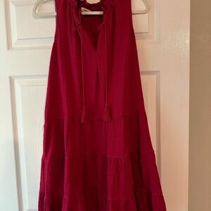 This chic sundress in a vibrant green hue is perfect for a night out or cocktail event. It features a plunging neckline, flutter sleeves, and a playful tiered skirt with ruffles. The tie front detail at the waist adds a touch of elegance and allows for a customizable fit.