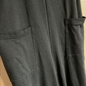 Black jumpsuit with adjustable tie back for straps. Oversized front pockets and a 12” leg opening only worn twice