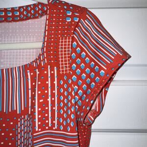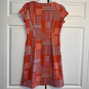 J. McLaughlin Dress /Orange Blue /Size Small/Short Sleeve Stretch Pockets