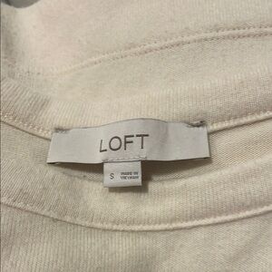 This elegant cream pullover from LOFT features a classic crew neck and long sleeves with a subtle puff at the shoulders, adding a touch of sophistication. The soft, textured knit ensures a comfortable and relaxed fit, making it an ideal choice for any casual occasion.
