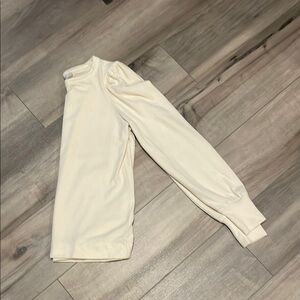 LOFT Cream Crew Neck Pullover with Puffed Sleeves