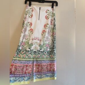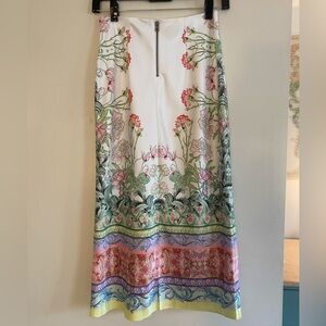 Floral print satin midi skirt with slit in the back. This skirt is perfect for any occasion. Never worn.