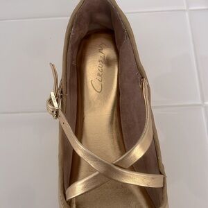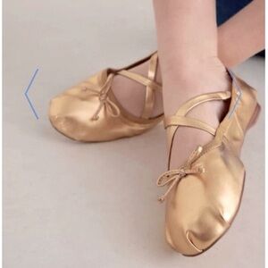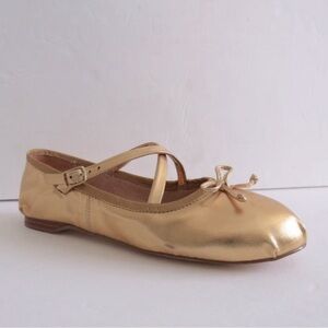 Anthropologie Circus Ny Zuri Satin Cross-Strap Ballet Flats, Gold