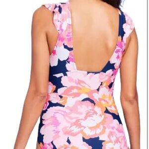 Pink and Orange Floral One Piece Swimsuit with Ruffled Straps