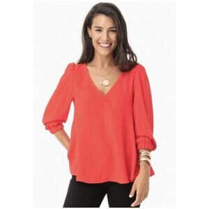 The top features long casual sleeves and a classic button closure that adds a timeless touch. Designed for women and available in a size small, this top blends a solid pattern with a basic style, making it an easy match for a variety of occasions, from casual outings to more polished events.