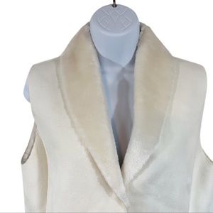 Vintage Lauren Ralph Lauren Vegan Suede Vest Petite S Cream Faux Fur Collar