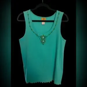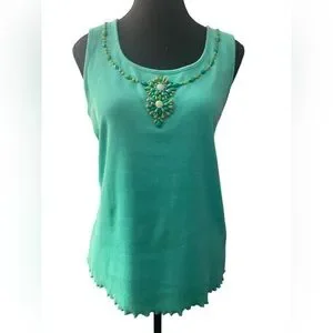 Ruby Rd Turquoise Sleeveless Top With Beaded Details EUC M
