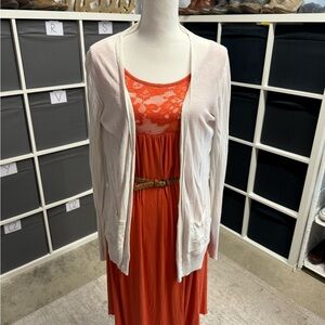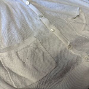 Perfect layering piece for spring and summer! Greta lightweight clean white cardigan! Tall girl friendly! Some tiny holes on right pocket I noticed as I packaged up.