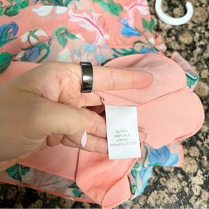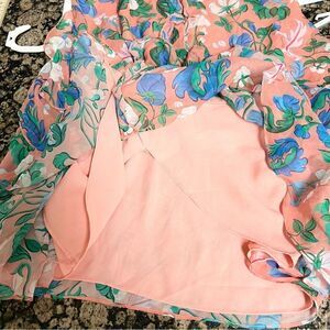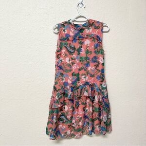 Saloni Tilly 100% Silk Pink Floral Button Up Ruffle Dress Size 2 Sleeveless