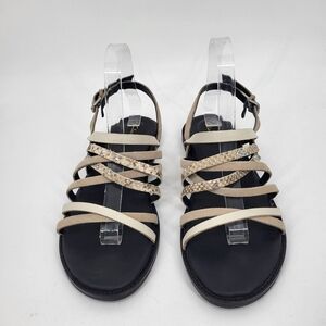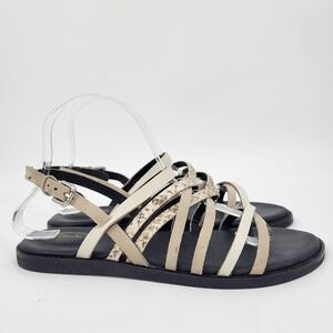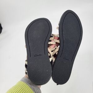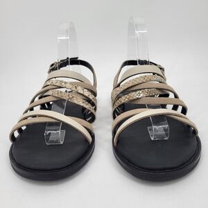 Clarks Karsea Leather Strappy Sandals Snakeskin Print Tan Black Size 8.5