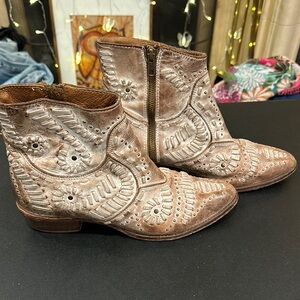 COPY - Matisse Fiesta Brown Leather Ankle Boots with Ornate Design and Low Heel…