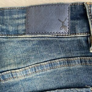 Elevate your casual style with Reebok's blue distressed jeans. Perfect for a trendy, laid-back look.
