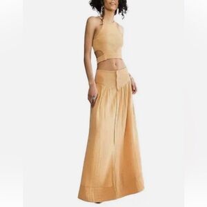 Embrace effortless style with this green sundress from Free People, featuring a flattering v-neckline and playful puff sleeves with ties. Perfect for casual outings or resort wear, the dress boasts a ruffled hem that adds a feminine touch to its relaxed silhouette. It’s a slightly oversized Medium (fits more like a L), but not grossly oversized like some free people items.