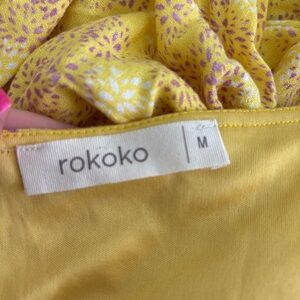 Rokoko yellow floral mini dress. In perfect condition. Size medium. Zips and ties in the back. Super cute.