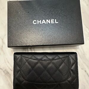 Chanel Black Caviar Quilted Classic Flap continental wallet