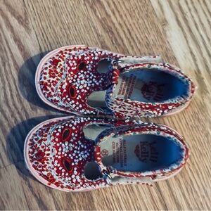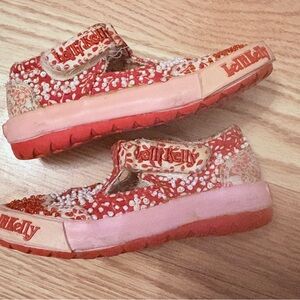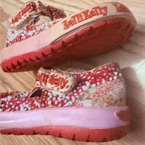 Lilli Kelly Pink Flower Embellished Tennis Shoes Velcro Strap Size 2 M