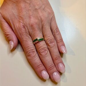 This elegant ring features a stunning combination of emeralds and diamonds perfect for adding a touch of sophistication to any outfit.