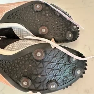 These spikes have been used and show some signs of wear, including light dirt on the upper and sole, but they are still in good condition for continued use. The word “DISTANCESTAR” is printed on the heel, confirming the model. Perfect for athletes looking for a reliable pair of track spikes at a great price!