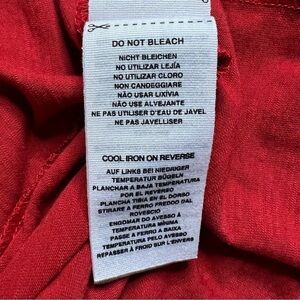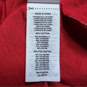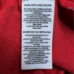 Sleeves have a faint reddish tint but show no signs of color running from the shirt