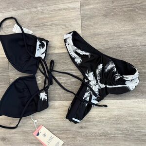 Stylish black and white bikini set with a tropical print. Reversible to black. Super cute fit. Size M in both. Purchased in Greece and just never wore. Brand new. Never worn. Make offer!