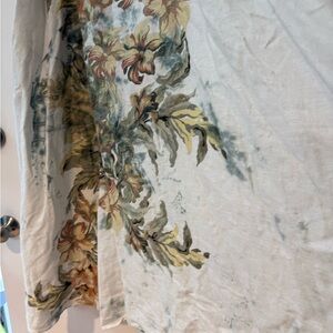 Off-white floral (100% Linen). Casual dress. Sleeveless. Strapless. Side zipper closure. 57" from shoulder to hemline. Imported.