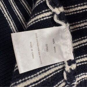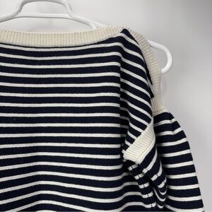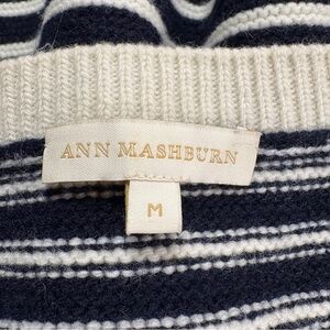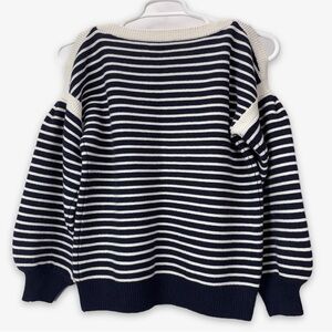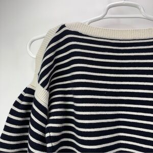 ANN MASHBURN Sweater Womens Medium Boat Neck Wool Navy Cold Shoulder Striped