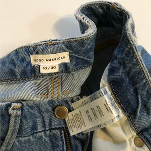 Good American 90's Duster Women's Indigo Distressed Denim Crop Blue Jeans 10/30I