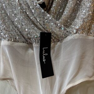 Lulu’s NWT Evening of Wonder sequin bodysuit in size large. Beautiful addition to any closet!