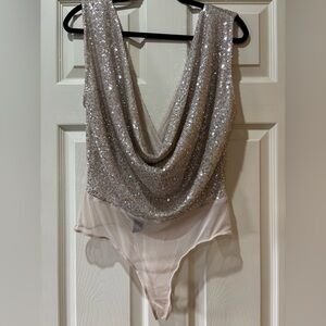 NWT Lulu’s Evening of Wonder Sequin Cowl Back Bodysuit