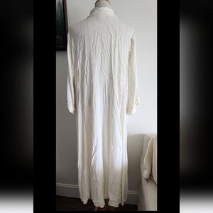 Vintage, Spencer Alexis Woman, women's, plus size, maxi, shirt dress. Size 26. Off white color with beige embroidered pattern. Close knit material made of 67% rayon, 29% flax, and 4% cotton material. Buttons all down the front. Side pockets. 3/4 sleeves. Style this with a leather belt and boots!! In great, clean condition, just a minor thread separation on the right by underarm area, see pic, hardly noticeable and easily mended. Smoke free home.