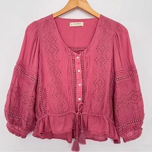 Crafted from organic cotton, this cropped blouse from GANNI is playfully elevated by broderie anglaise detailing. Voluminous balloon sleeves add to the charming nature of the design.