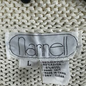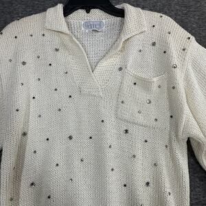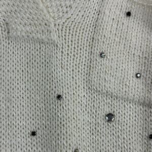80's Sweater Nannell Cream and Rhinestone Open Weave Short Sleeve Sweater Large