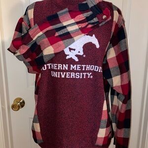 Repurposed Southern Methodist University Plaid Sweater & Red/Navy Flannel Shirt
