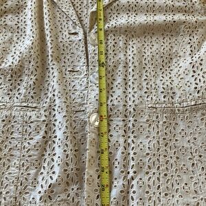This elegant cream lace jacket is perfect for adding a touch of sophistication to any outfit. Its intricate design and soft color make it a versatile addition to your wardrobe.