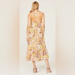 Bardot Labella Halter Linen Dress Womens Tropical Floral Back Tie Butter Yellow