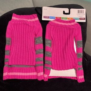 BNWT SET OF 2 PINK & GRAY STRIPED DOGGIE 100% ACRYLIC SWEATERS SIZE SMALL
