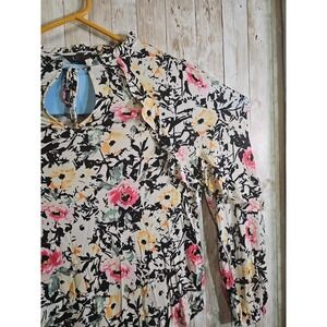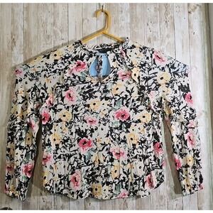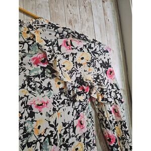Lauren Ralph Lauren Women's V-Neck Top Floral Ruffle Long Sleeve Size M