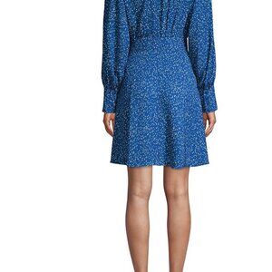 Speckled throughout with micro paint splatters, this wrap dress flaunts classic buttoned barreled sleeves making it an intriguing mix of artistry and elegance.