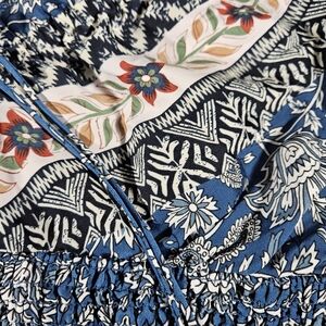This stylish blue floral top is perfect for any occasion. The intricate design adds a touch of elegance to your wardrobe.