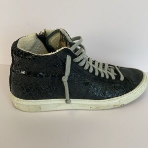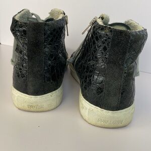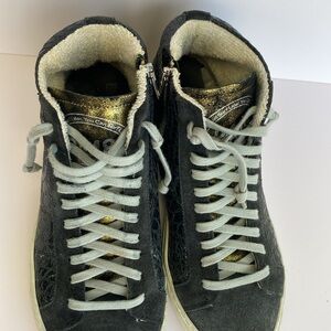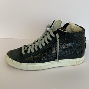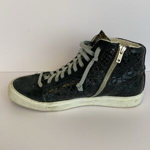 Stylish black high-top sneakers with white soles. Perfect for casual wear.