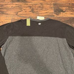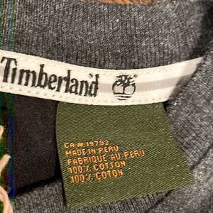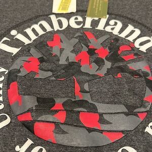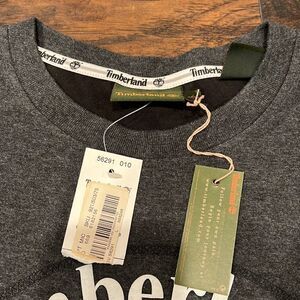 NOS Timberland camp logo spell out on chest long sleeve shirt size L NWT grey and black very cool unique shirt