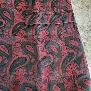 Elevate your style with this elegant paisley blazer. Featuring a striking red and black design, it's perfect for formal occasions. The black lapel adds a touch of sophistication.