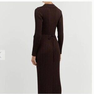 Dissh Brown Ribbed Long Sleeve Dress with Tie