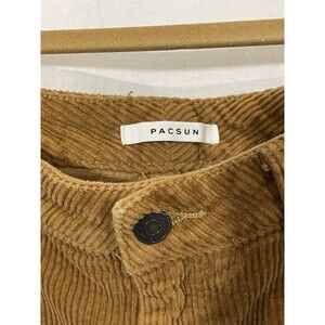 Elevate your style with these camel-colored PacSun Mom Jeans made of 100% cotton corduroy fabric. These ankle jeans feature a high rise, zip and button closure, and pockets for your convenience. The jeans are machine washable and perfect for any season. The brand name "PacSun" is accented with a button, zipper, and logo. These jeans are perfect for women who want to look stylish and comfortable at the same time.