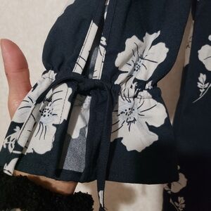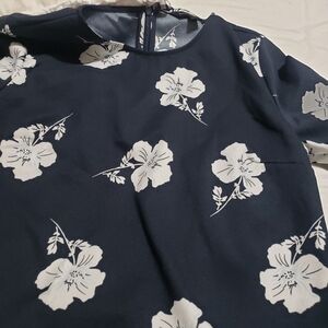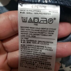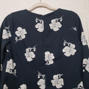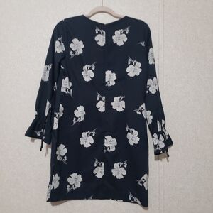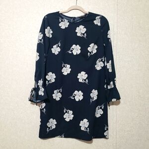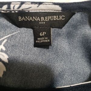 This Banana Republic dress features a ruffled, tiered design in a striking blue and white floral pattern. The long bell sleeves and crew neck add a touch of elegance, making it perfect for both casual and work settings. Its sheath style offers a flattering silhouette, ensuring comfort and style throughout the day.