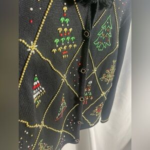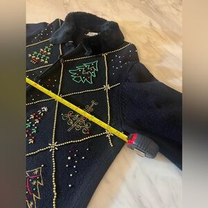 Dealers & Damons Vintage Faux Fur Collar Christmas Button Cardigan Beaded Size L
