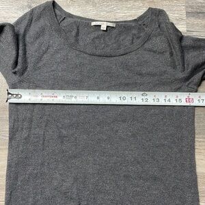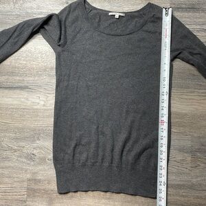 GAP Women’s Charcoal Wool Blend Crew Neck Sweater with button cuff, size small. In good used conditon, some very minor pilling. . See pictures for measurements and fabric content.