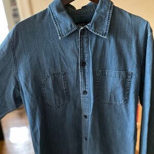 Elevate your wardrobe with the A.P.C. Men's Blue Denim Shirt. This stylish shirt features a classic design, perfect for any occasion. The blue color adds a touch of sophistication to your look.