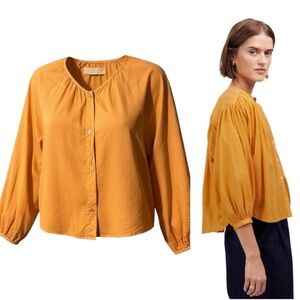 We the Free High Low Cotton Top in pale pink. High low hem. Long fitted sleeves. V-neck. Subtle pleats on the back for a feminine touch. Relaxed fit. Lightweight 100% cotton. Made in the USA